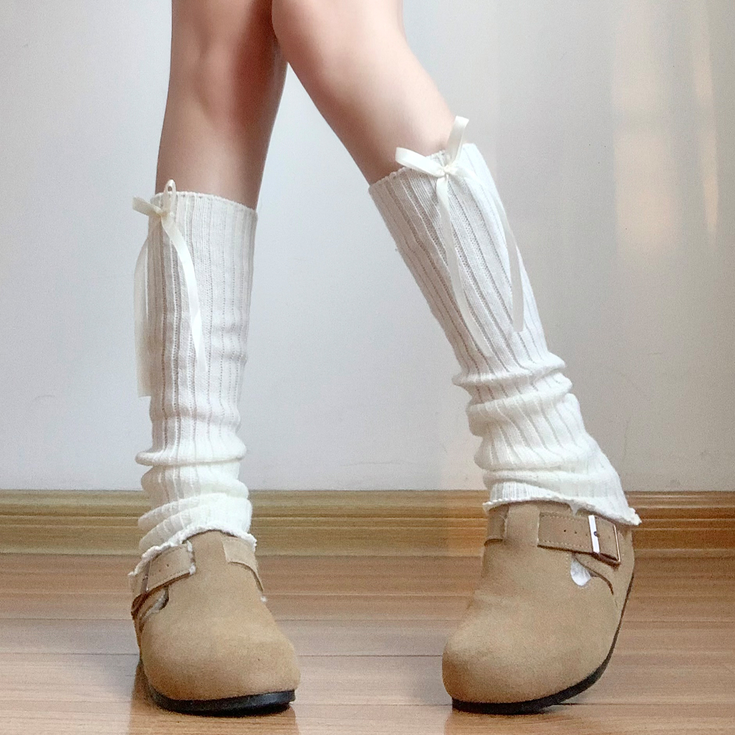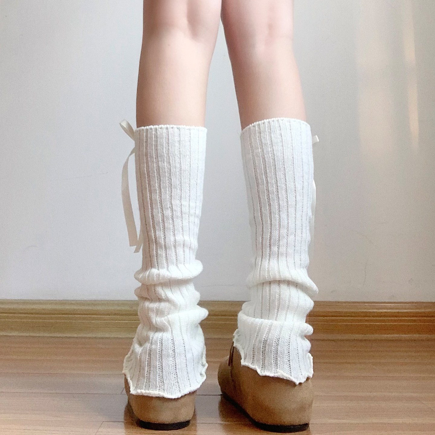 袜套女夏薄款 长袜配裙子 白色小腿袜蝴蝶结袜子芭蕾风堆堆腿套夏季