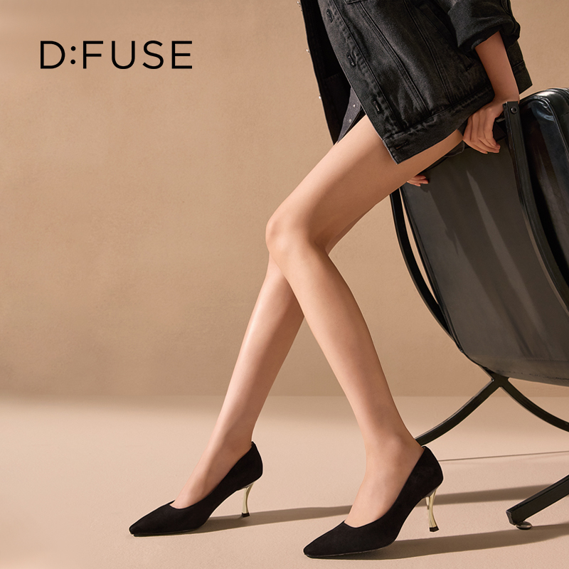 女鞋 Dfuse迪芙斯2025秋新款 简约细跟浅口高跟鞋 复古尖头单鞋 法式