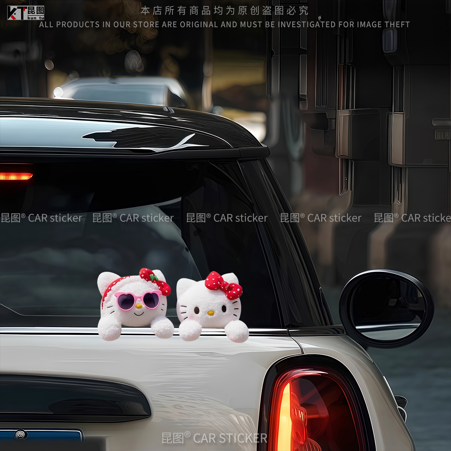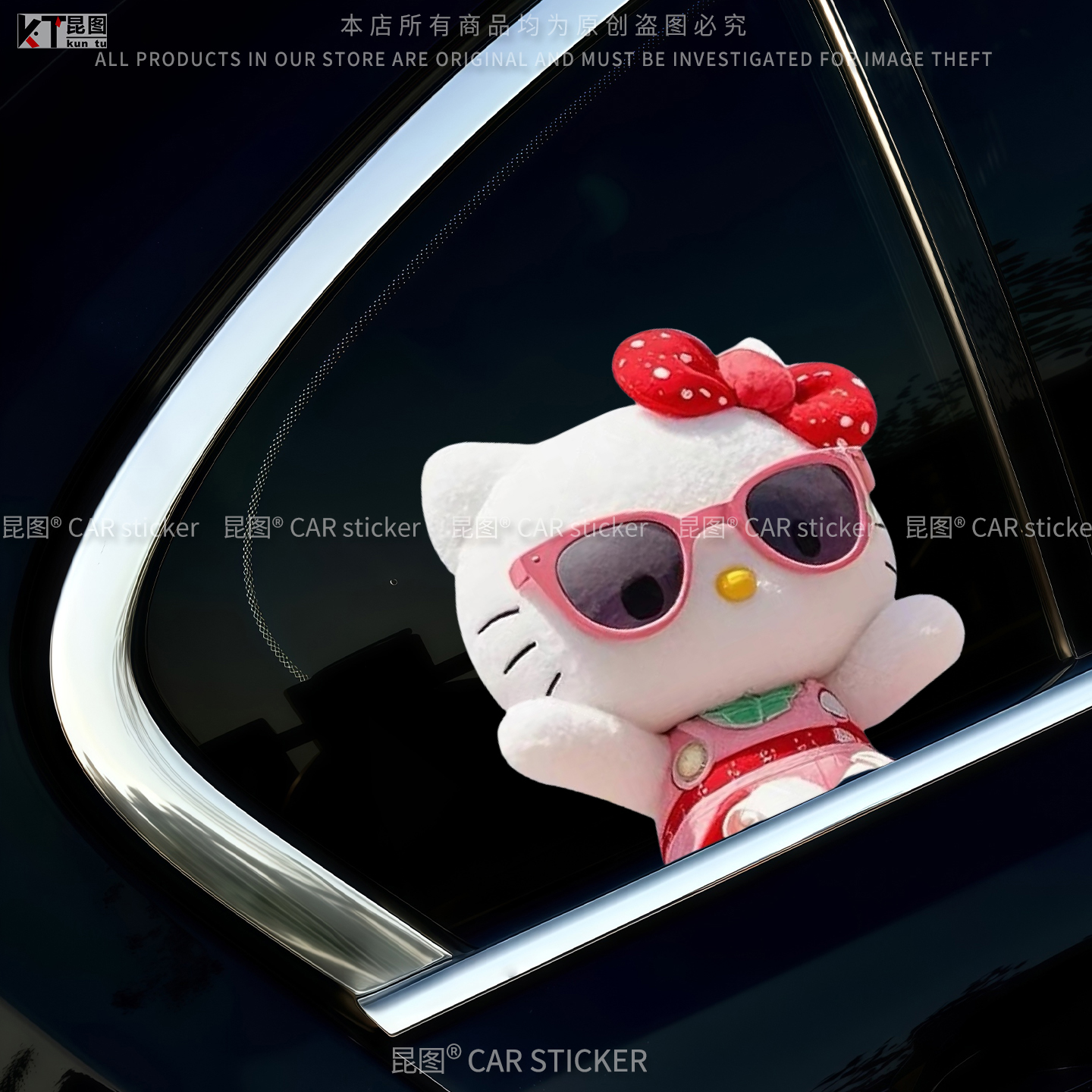 KT猫汽车贴纸装 饰车窗车尾车身遮挡刮痕三角窗电动车行李箱贴防水