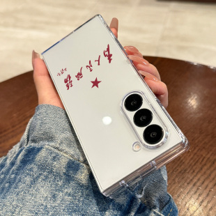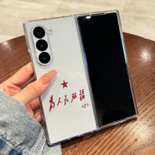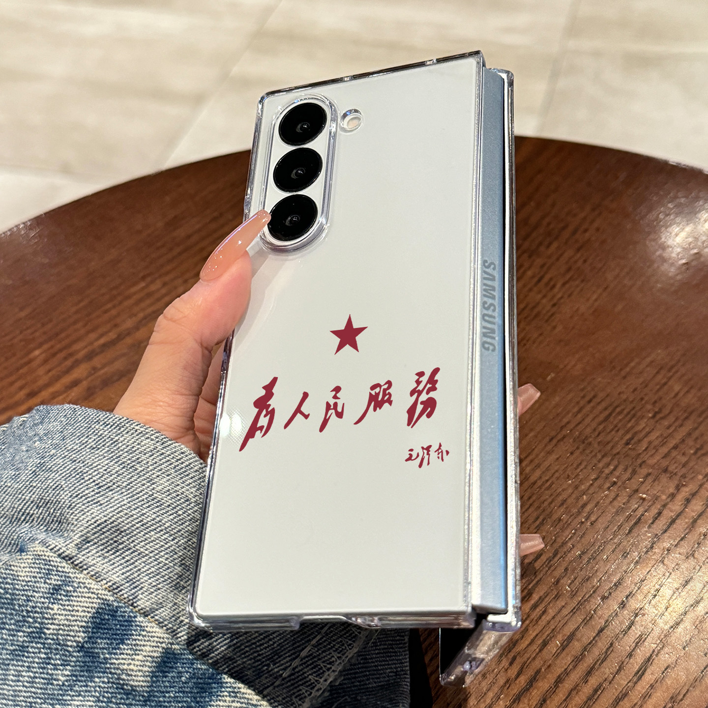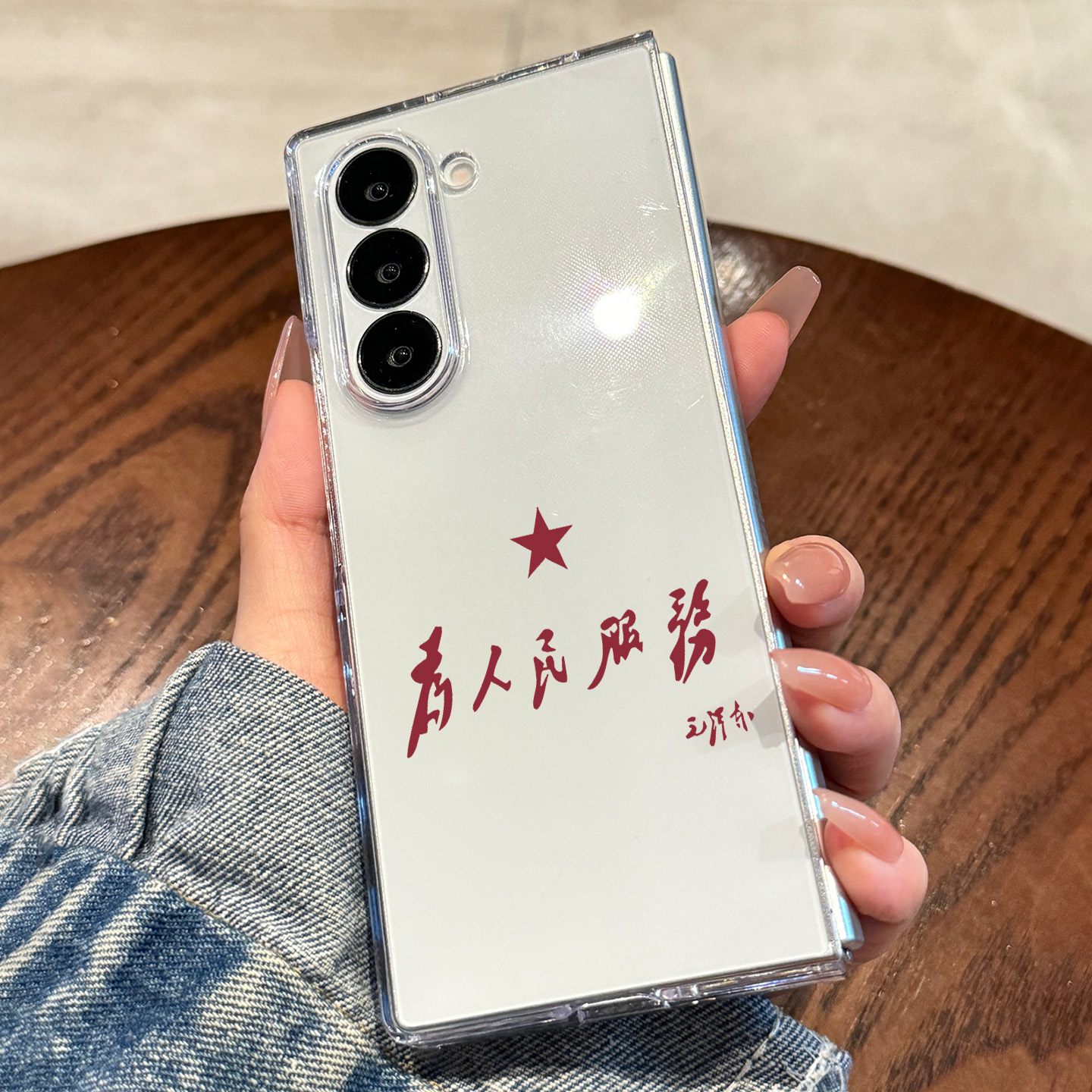 适用于三星zfold7手机壳新款 小众独特 为人民服务zfold6折叠屏高级感透明zfold全包防摔fold7超薄Galaxy男女款