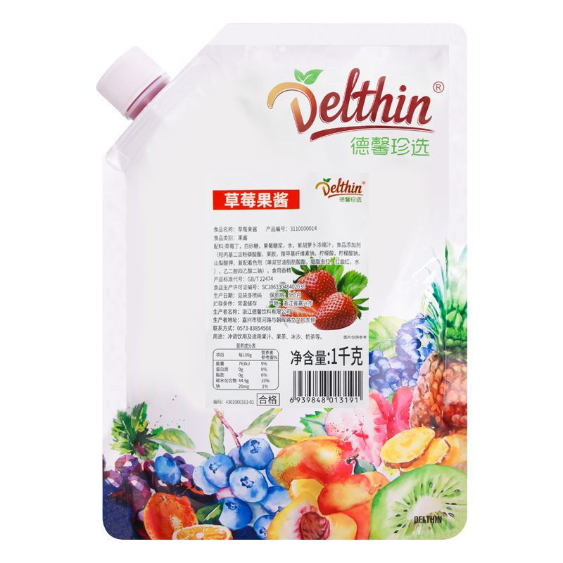 德馨草莓果泥果酱果汁烘焙沙冰甜品草莓果粒酱奶茶店专用原料1kg