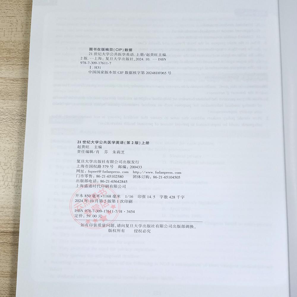 第2版 社 上册 复旦大学出版 9787309176117 赵贵旺 21世纪大学公共医学英语