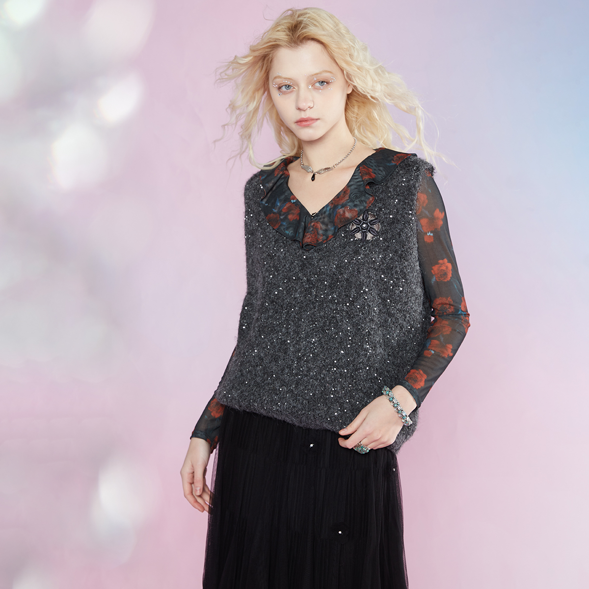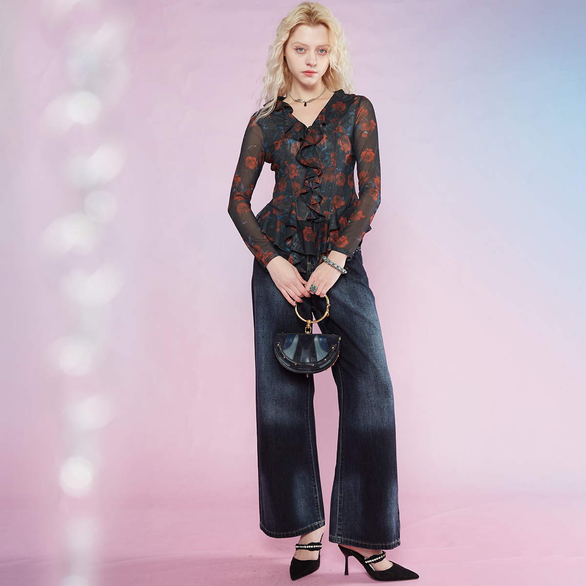 内搭上衣衬衫 木网纱薄款 女71VF118015 印花法式 莲灿2025新春夏款