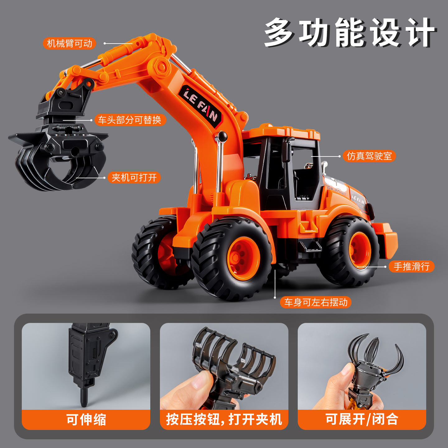 新款 大号仿真抓机惯性工程玩具车儿童推土机车5男孩3到6岁压路机