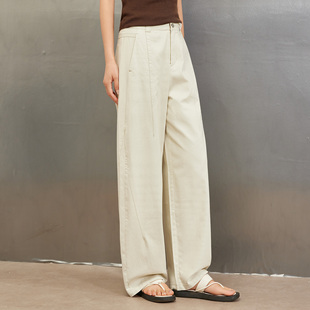 复古通勤直筒长裤 新款 女2025秋季 Navigare意大利小帆船磨毛牛仔裤