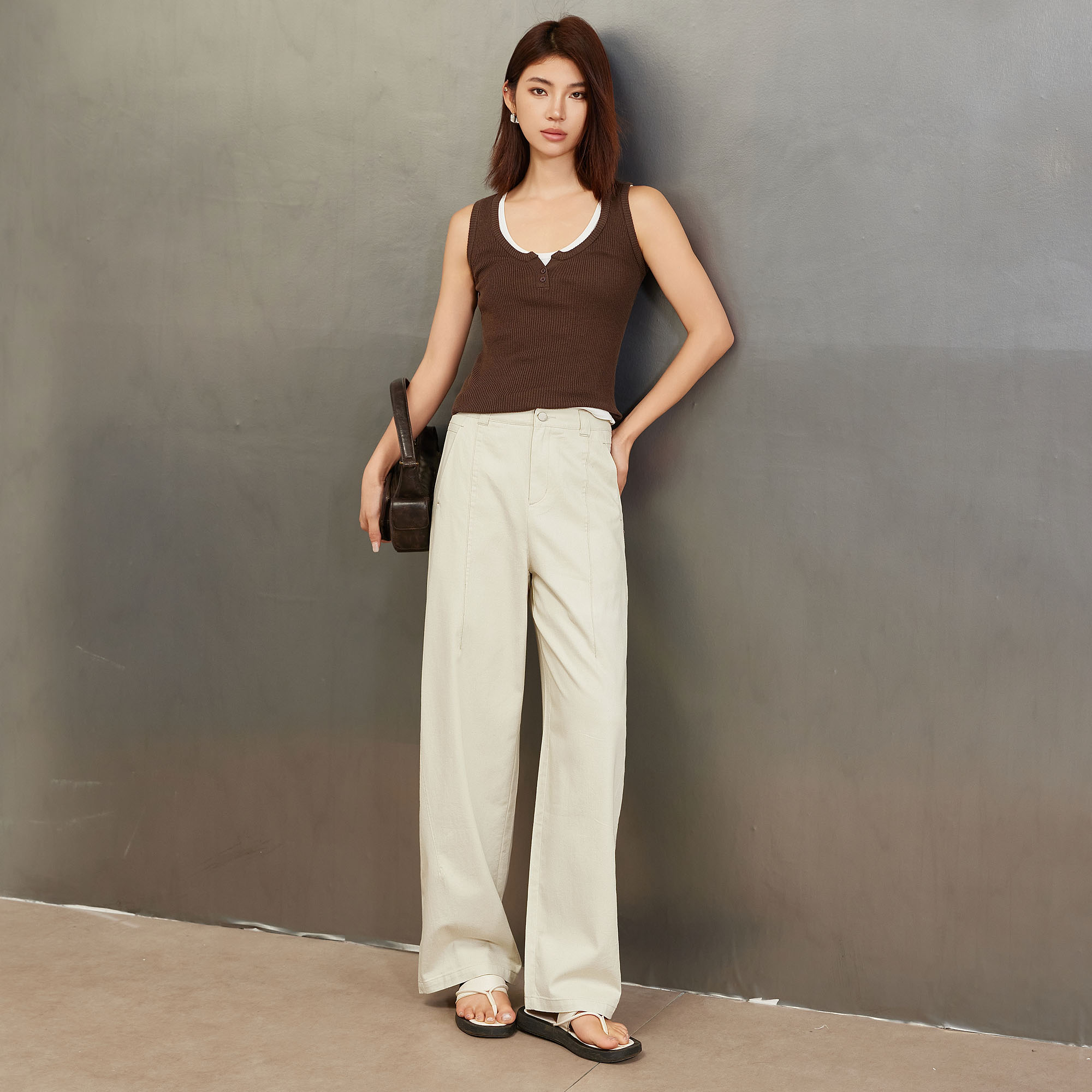 女2025秋季 百家好高腰牛仔裤 新款 印花垂感直筒裤 Basic 长裤 House