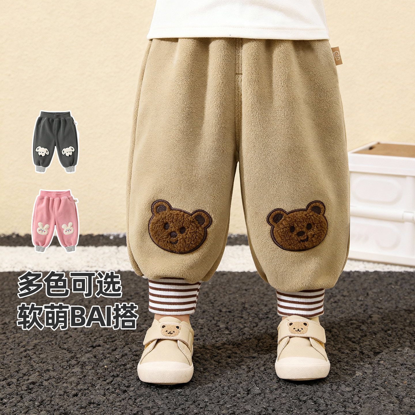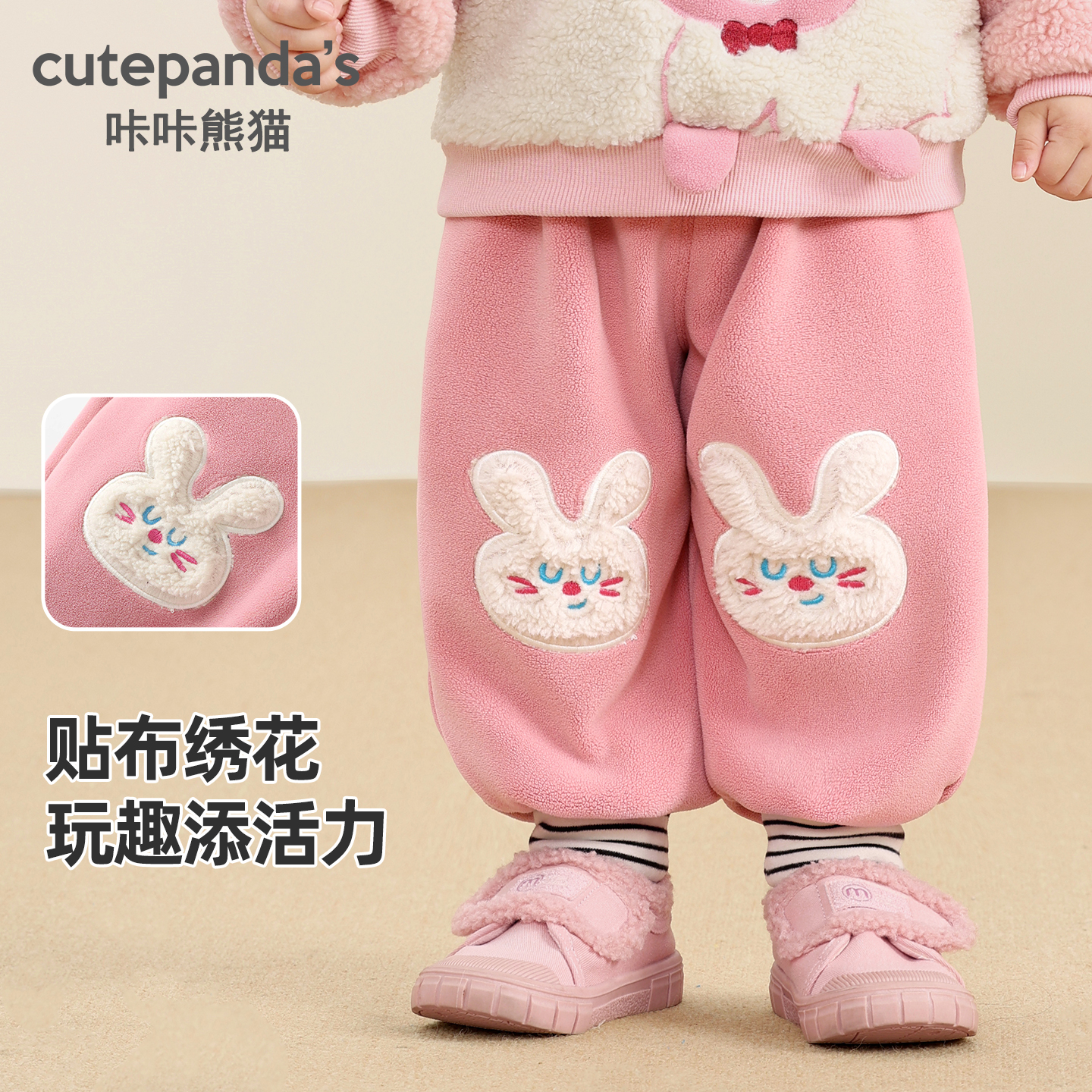 子男童女童长裤 裤 秋冬儿童奥粒绒冬款 咔咔熊猫宝宝加厚保暖束脚裤