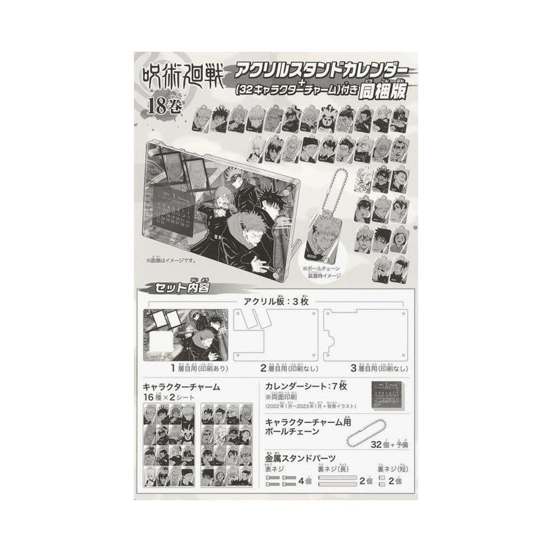 32个角色挂件 现货 版 呪術廻戦 日文二次元 原版 咒术回战 漫 特装 アクリルスタンドカレンダ—付き同梱版 附送亚克力年历