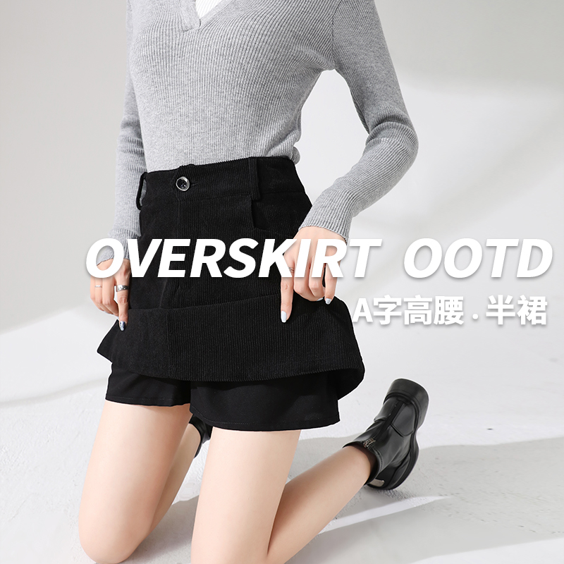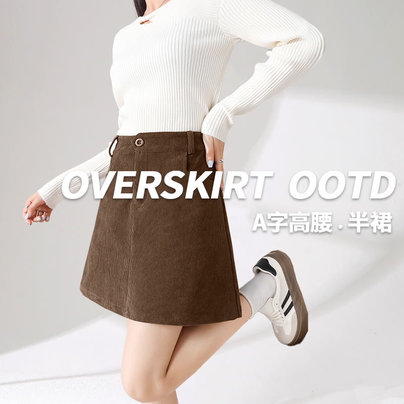 高腰梨型身材A字裙伞裙 半身裙百褶裙大码 胖mm显瘦百搭西装 中长款