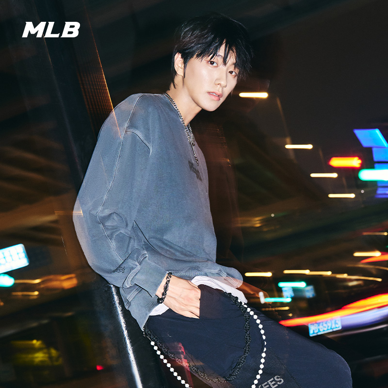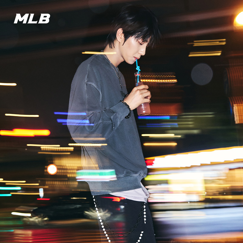 MLB官方张凌赫同款 MTB14 男女复古水洗做旧风套头卫衣25年秋冬新款