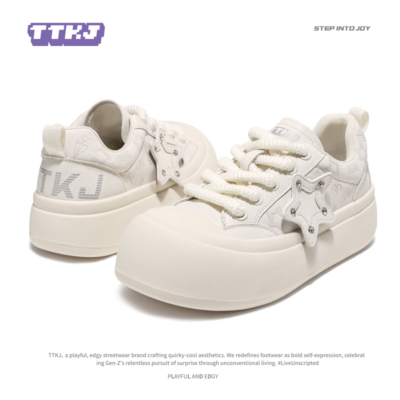 大头厚底小白鞋 TTKJ白色胖星鞋 浮雕印花原创设计女鞋 新款 2025秋季