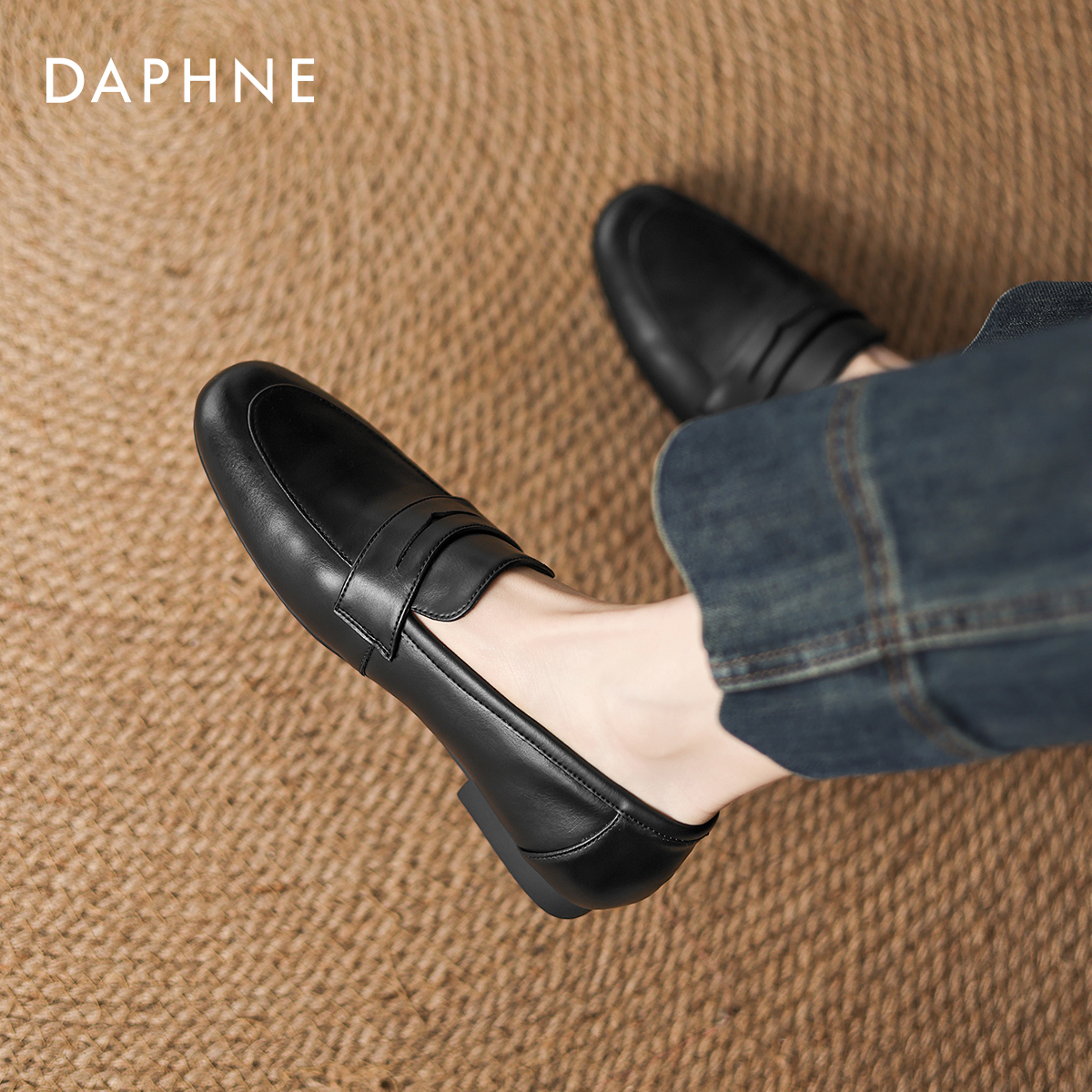 软底一脚蹬平底单鞋 达芙妮乐福鞋 女款 英伦风黑色小皮鞋 女2025新款