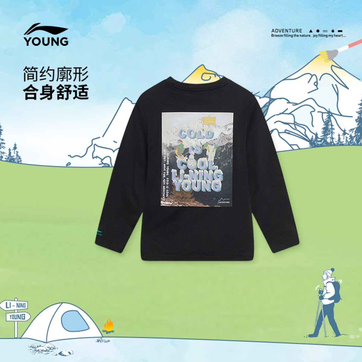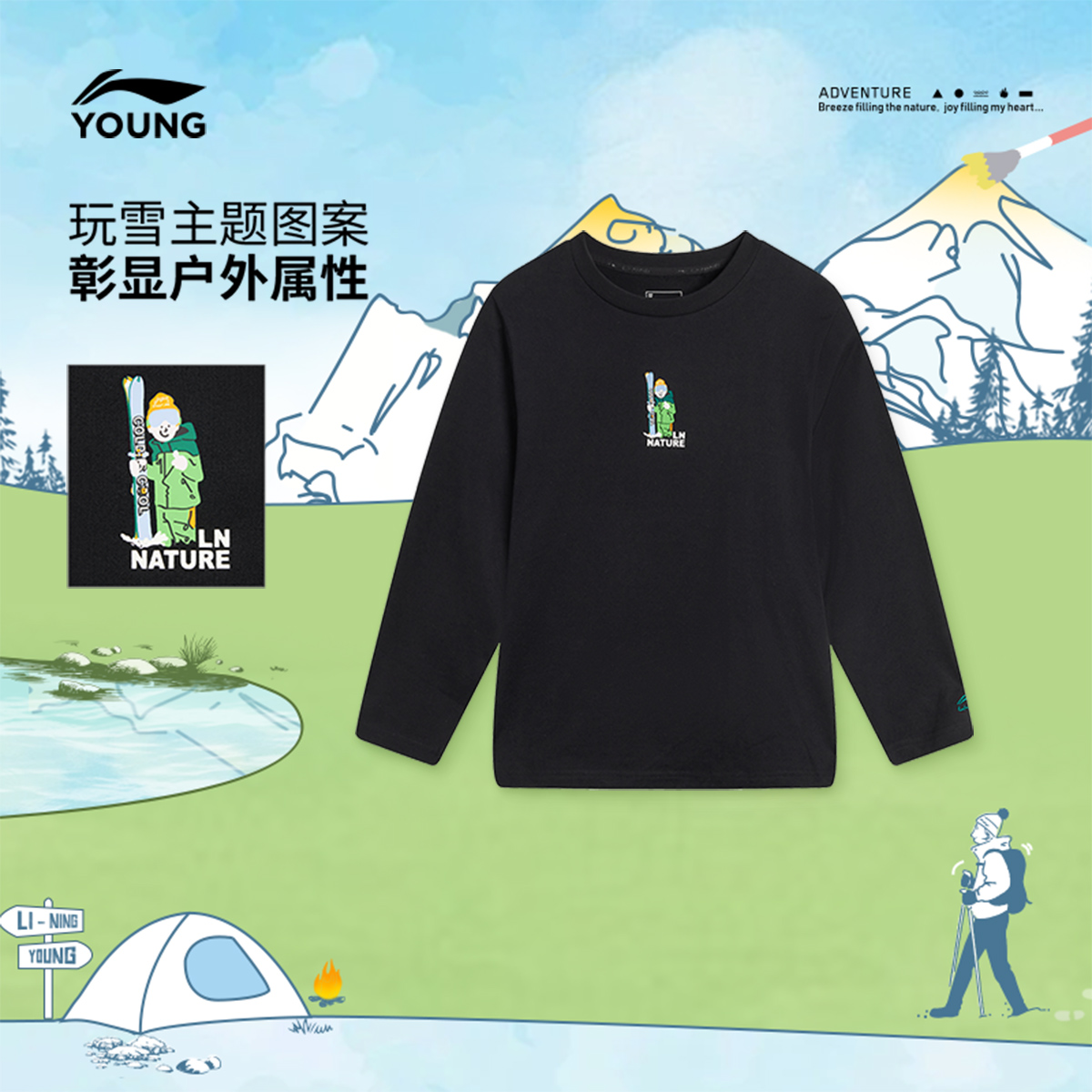 2025新款 T恤打底衫 春秋款 女男童装 商场同款 秋装 李宁儿童户外长袖