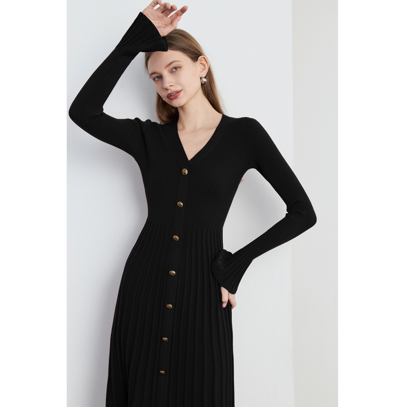 垂坠丝滑A字中长裙套装 深V翻领针织衫 连衣裙女 新款 ONLY2025秋季