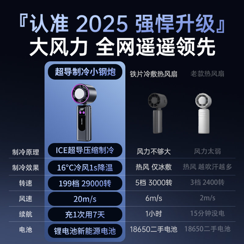 手持小风扇超高速制冷小风炮小型冰敷超长续航迷你便携折叠挂脖静音办公室学生户外降温神器充电风扇2025新款