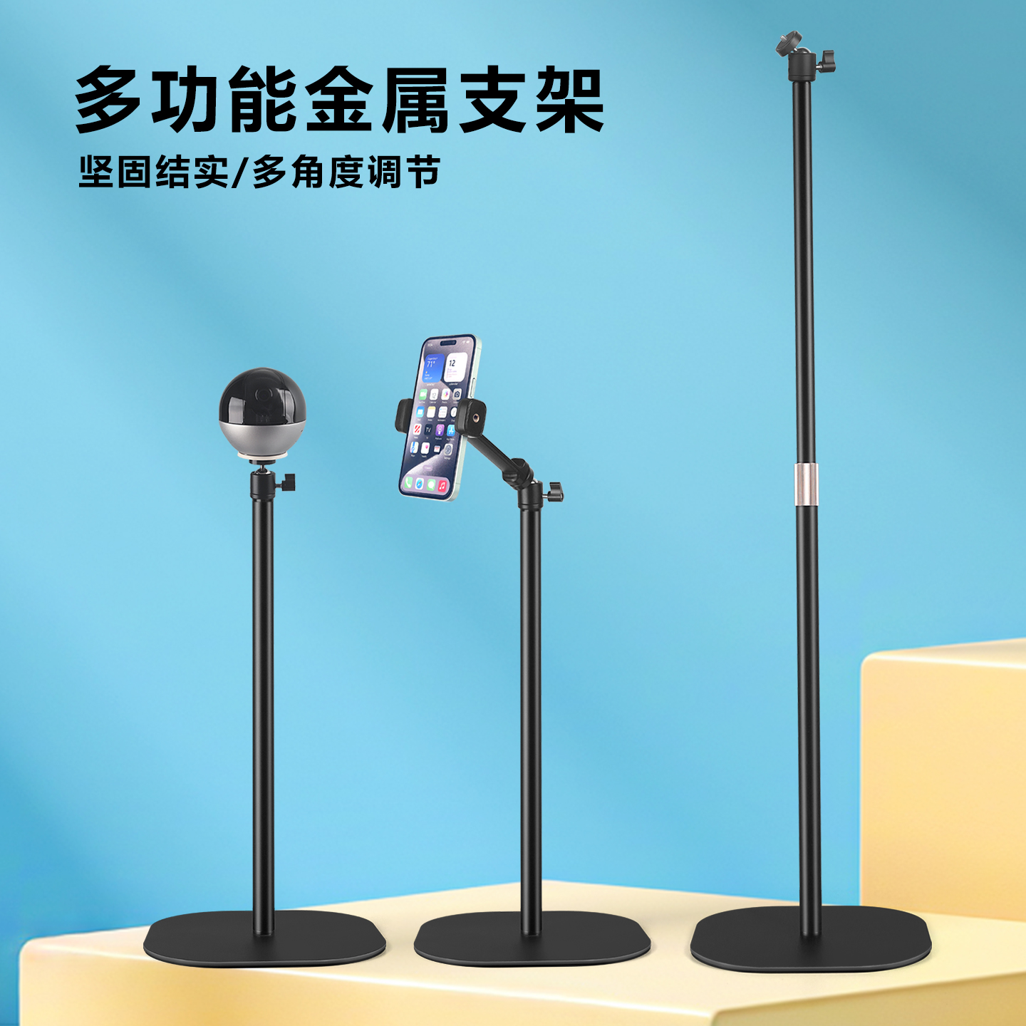 手机直播支架摄影棚落地灯架射灯圆盘金属底座室内植物补光灯桌面台灯伸缩可调节相机拍照摄像头监控固定通用