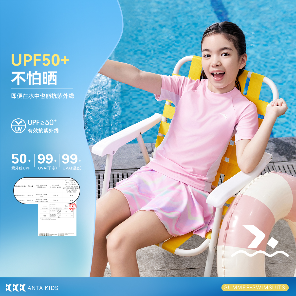 儿童粉色泳衣 速干抗氯防晒泳装 安踏儿童泳衣裤 女童分体泳衣泳裤