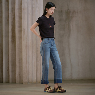 女 通勤休闲长裤 Navigare意大利小帆船牛仔裤 女百搭显瘦微喇叭裤