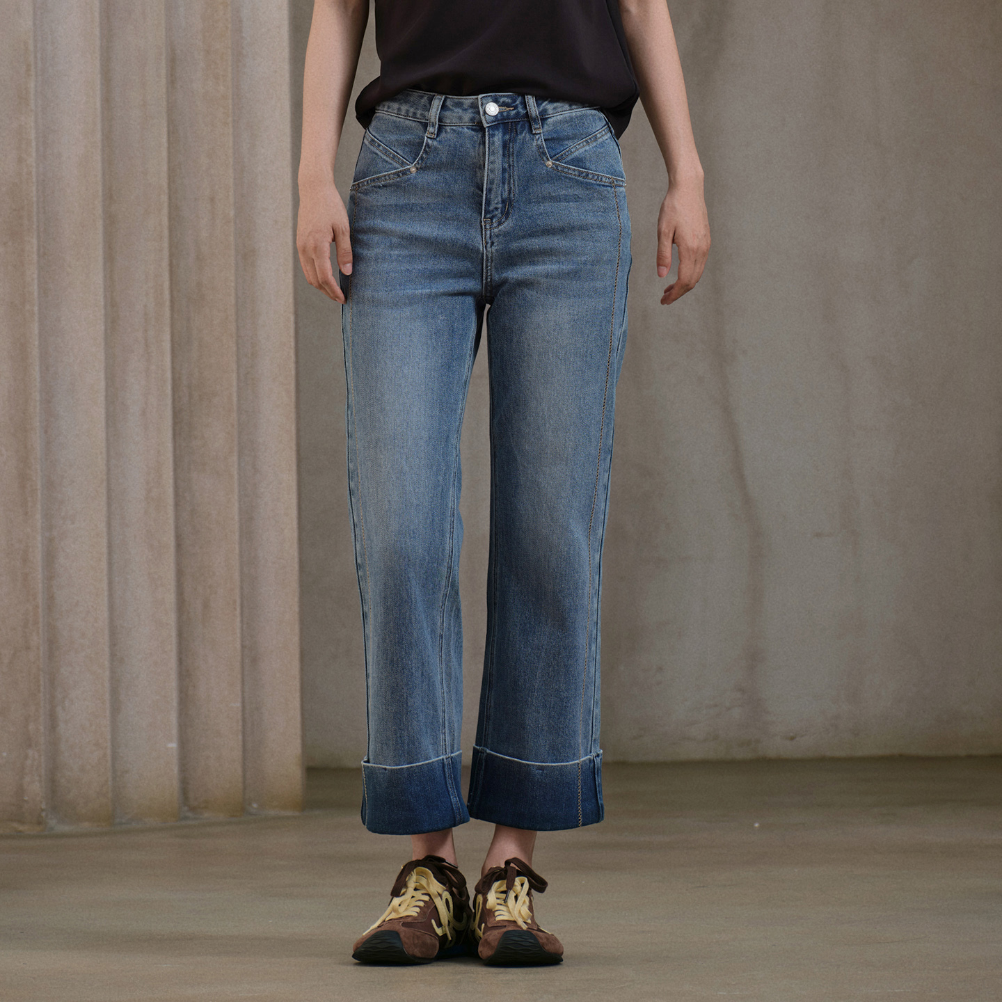 高腰阔腿丹宁休闲直筒宽松长裤 HM女装 新款 2025秋季 1298592 牛仔裤