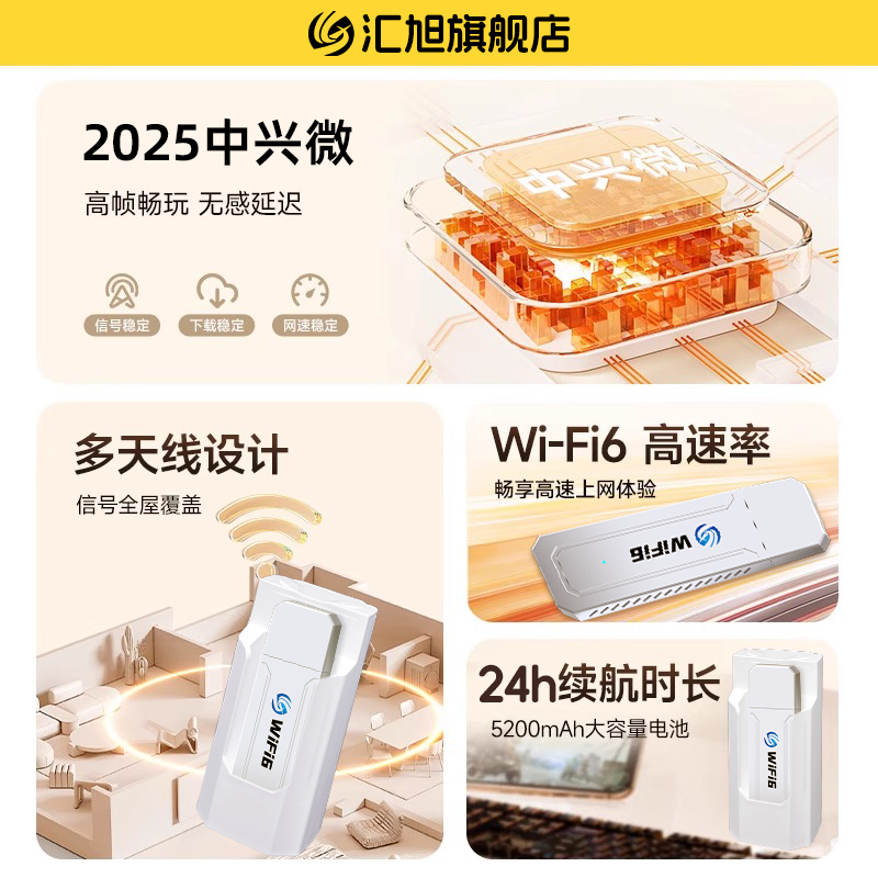 汇旭移动随身wifi6便携无线网插电式 无线上网卡纯流量租房宿舍家用户外直播工地农村车载wifl上网宝 2025新款
