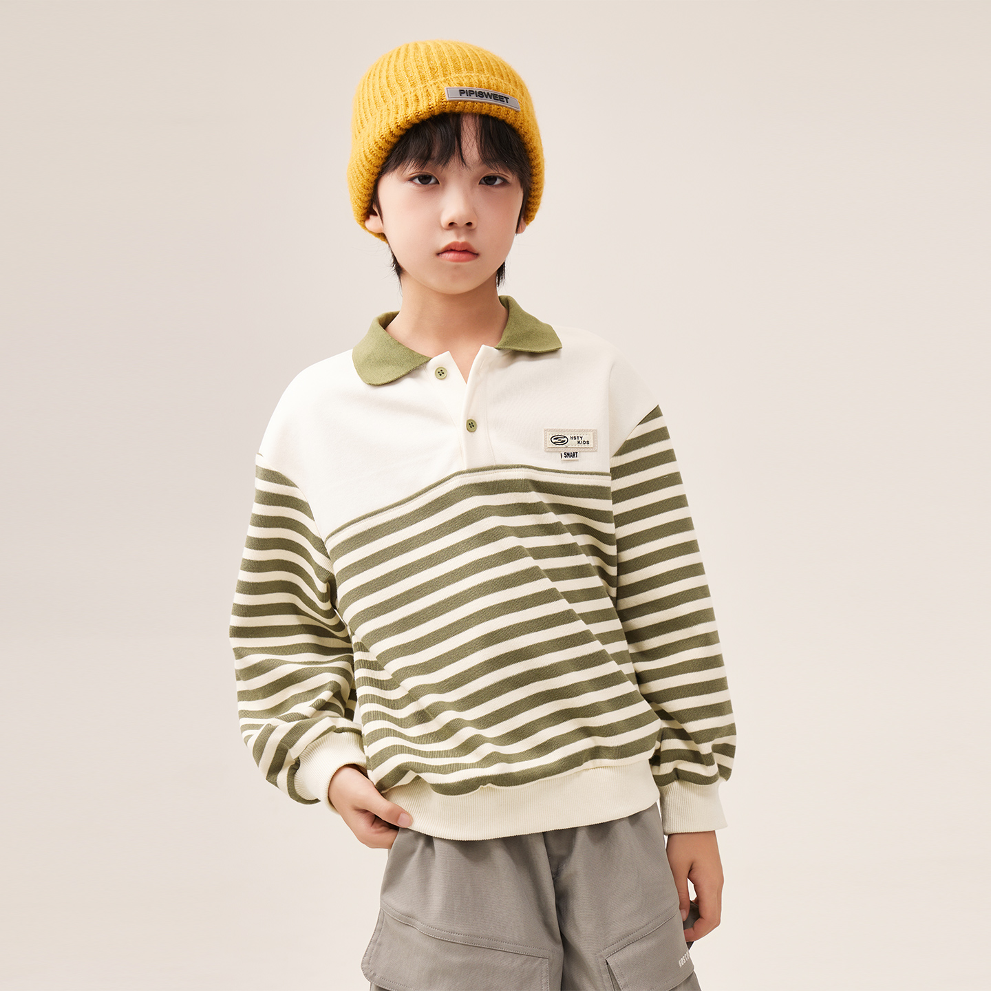 中大童polo领上衣儿童长袖 皇室童缘男童撞色条纹卫衣2025秋季 新款