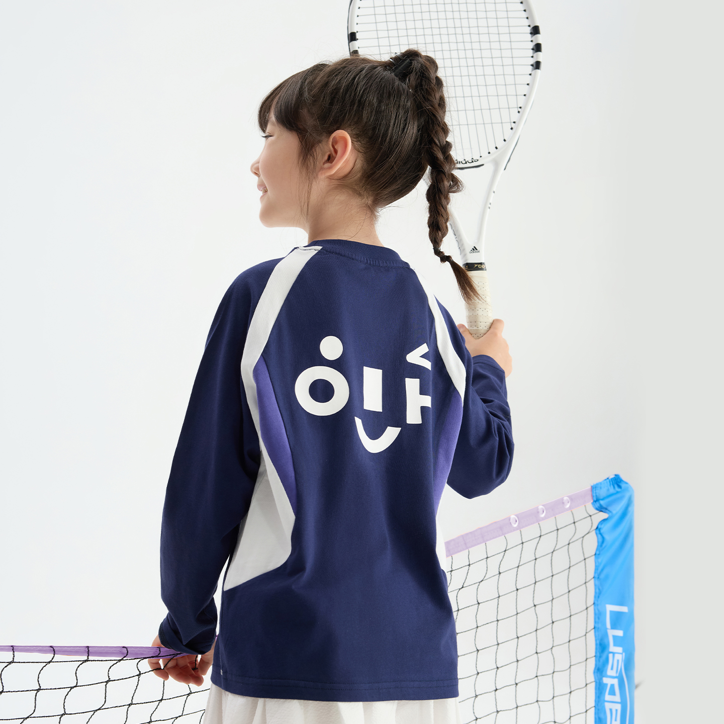 纯棉拼接撞色运动长袖 漫画家 儿童T恤秋新品 笑脸T恤女 wink