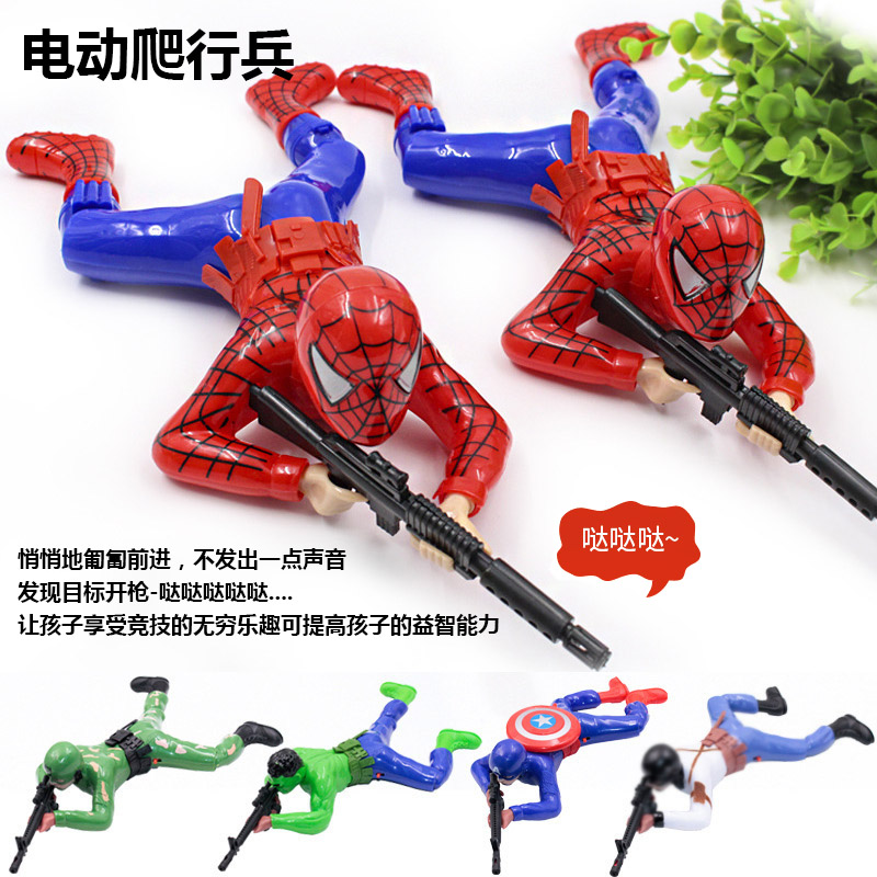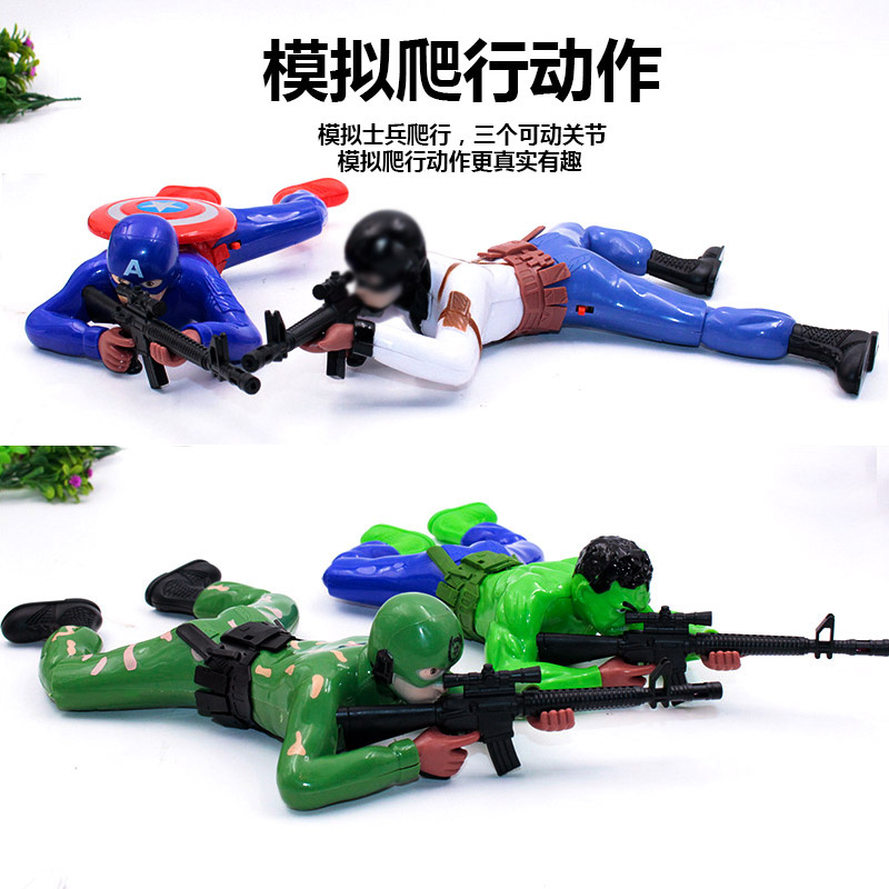 抖音爆款 电动爬行士兵打枪玩具儿童吃鸡蜘蛛侠美队开枪趴地爬动兵
