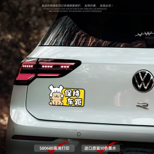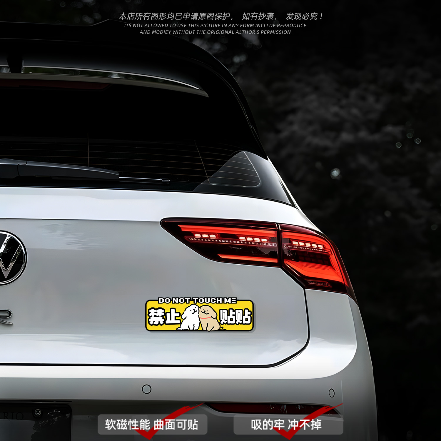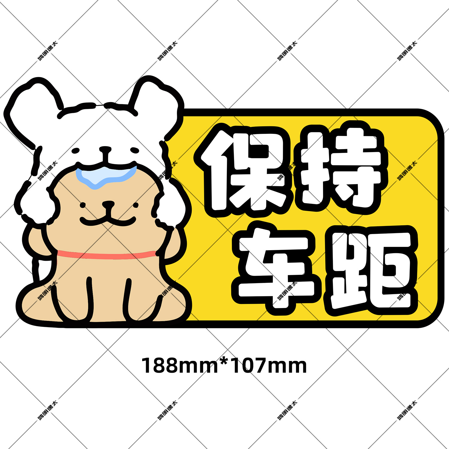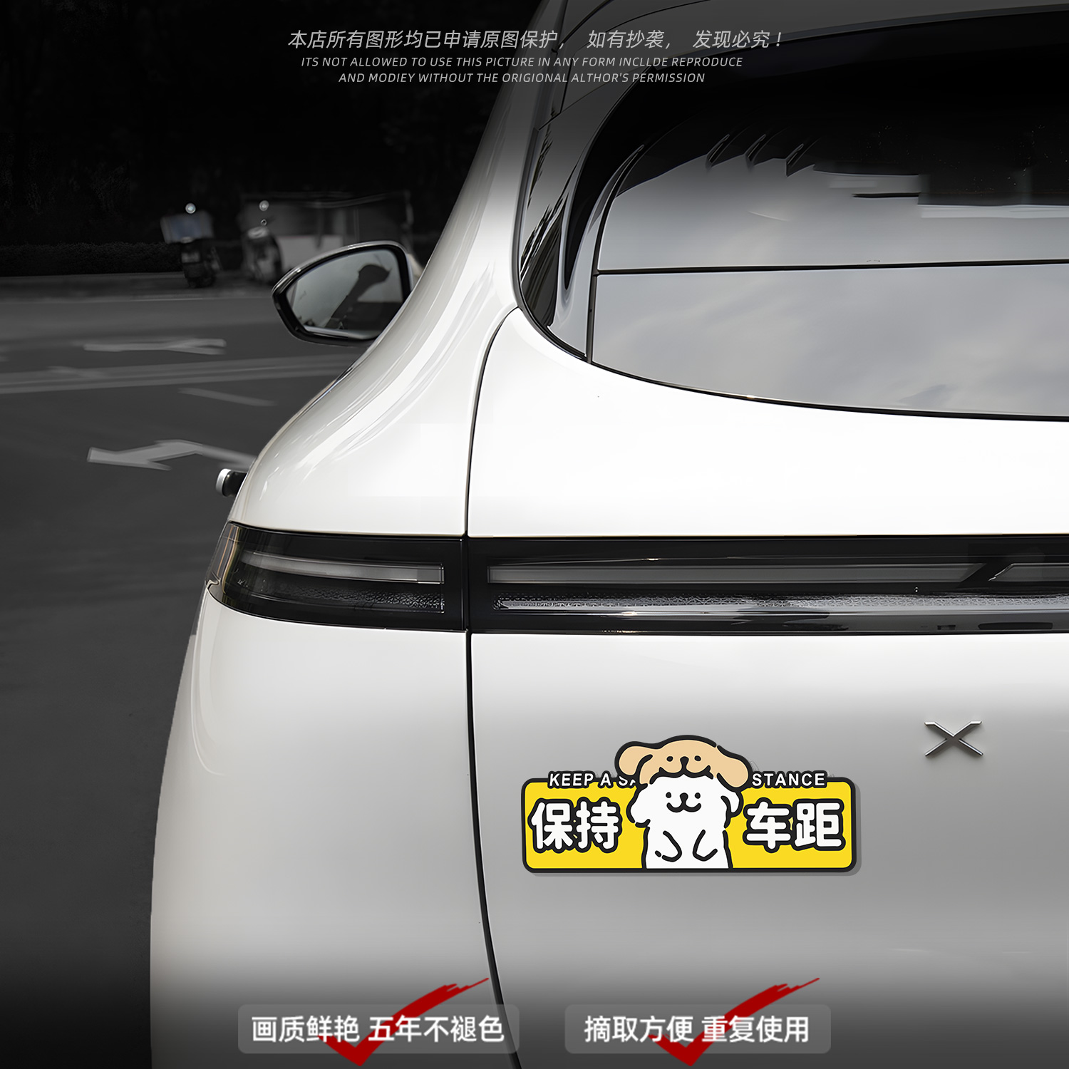新手上路女司机实习车贴线条小狗磁吸贴保持车距装 饰警示防水贴