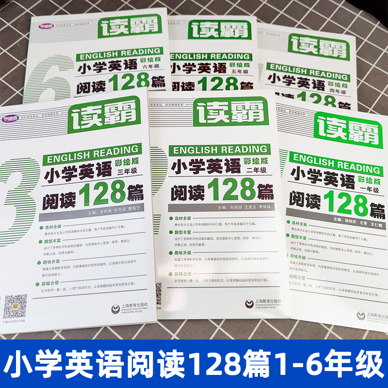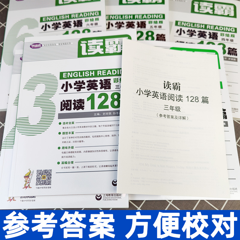 读霸小学英语阅读128篇一二三四五六年级彩绘版 社 附MP3英文朗读英语阅读理解听力英语教材阅读理解上海教育出版