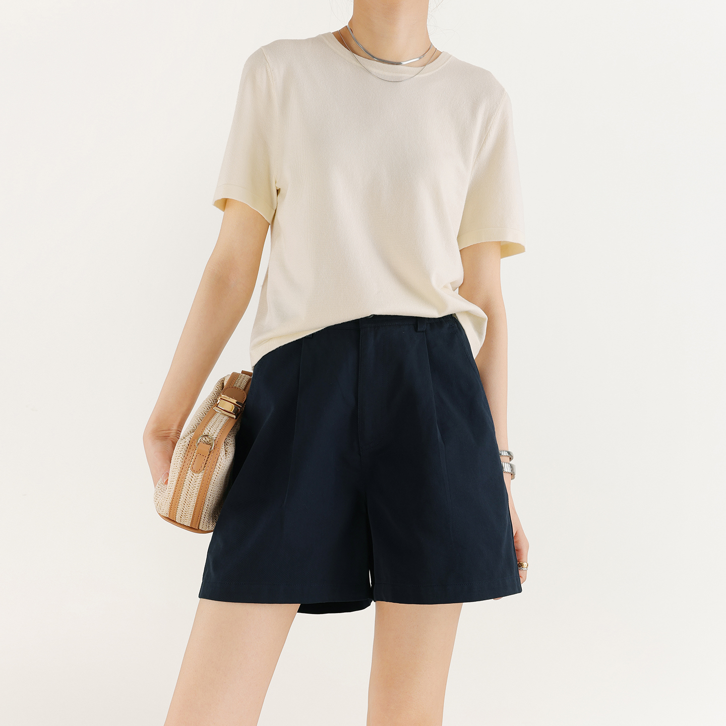 高腰垂感宽松休闲肌理感阔腿裤 白色奶芙冰丝山本裤 女夏2025年新款