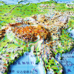 中国地形和世界地形图凹凸地图106x76厘米超大尺寸三维精雕地图高清易懂内容全面办公室会议室背景墙面装 3D立体版 饰挂画 共2张