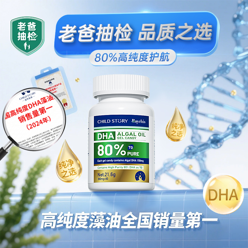 童年故事DHA藻油婴幼儿海藻油宝宝dha胶囊加拿大进口 老爸抽检