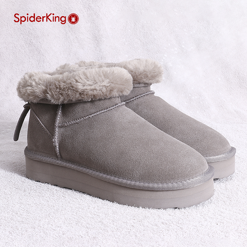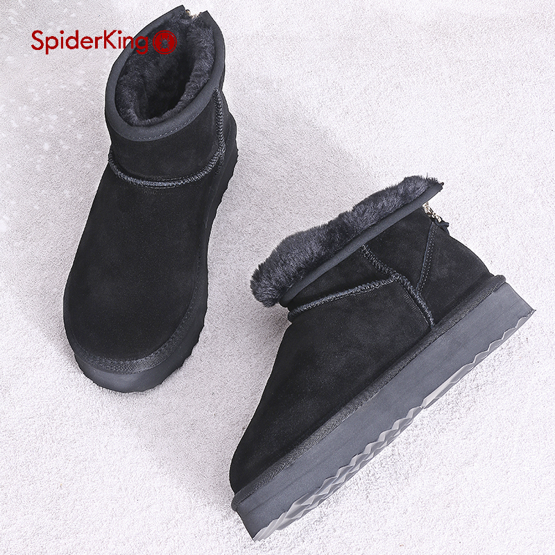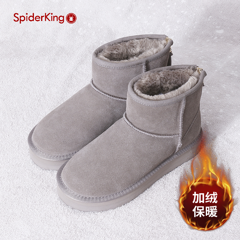 厚底防滑轻便马丁靴真皮绒面女鞋 蜘蛛王雪地靴女冬季 加绒厚绒棉鞋