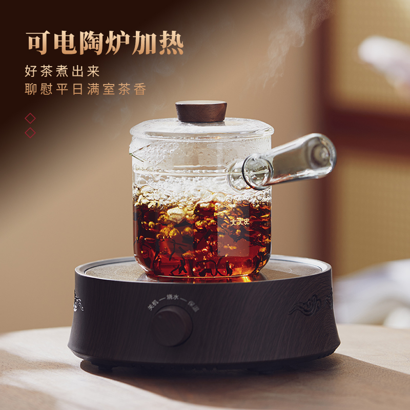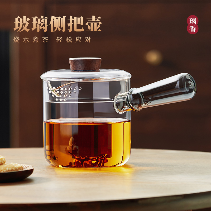 侧把玻璃茶壶煮茶壶家用加厚一体过滤泡茶壶耐高温电陶炉专用茶具