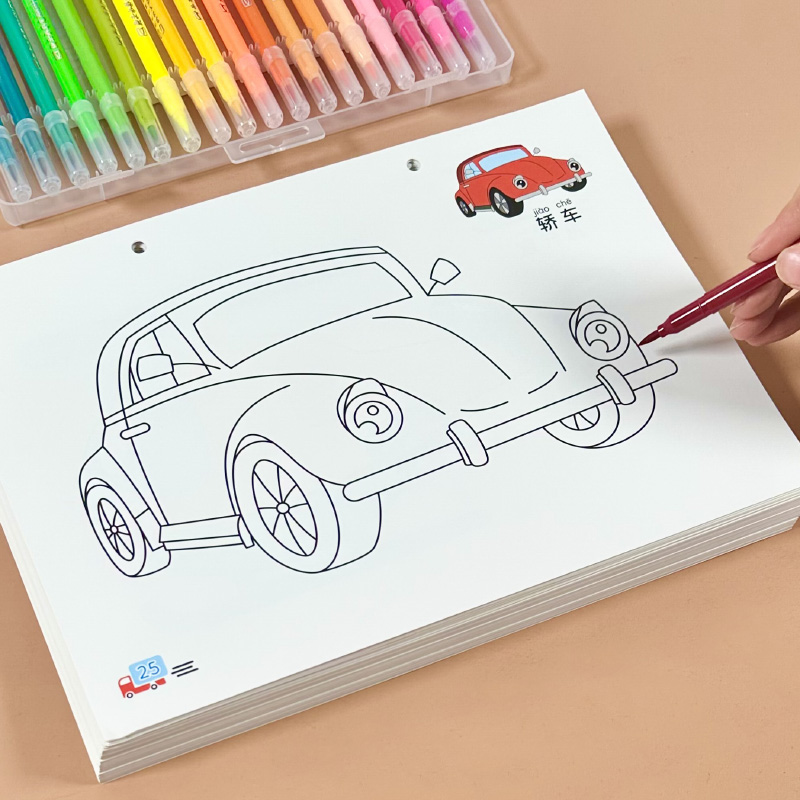 儿童马克笔涂色画本男孩小汽车工程车挖掘机交通工具填色图画画本