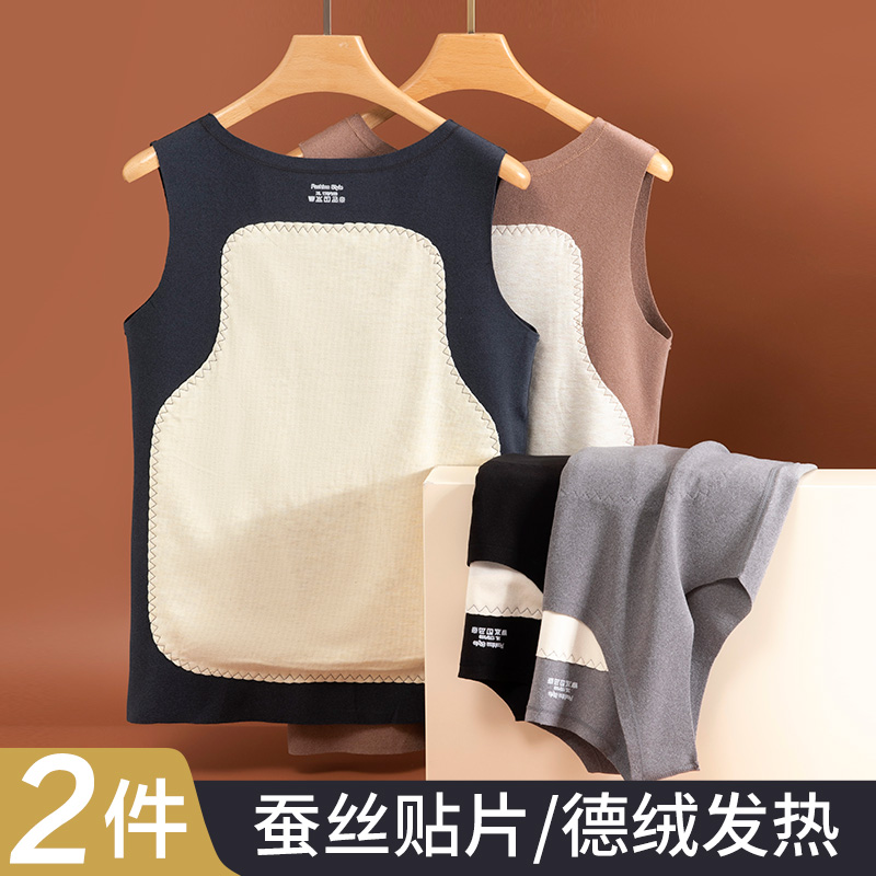 健丹鸟蚕丝羊毛保暖背心男款 无痕上衣打底内穿冬 德绒发热加绒秋季