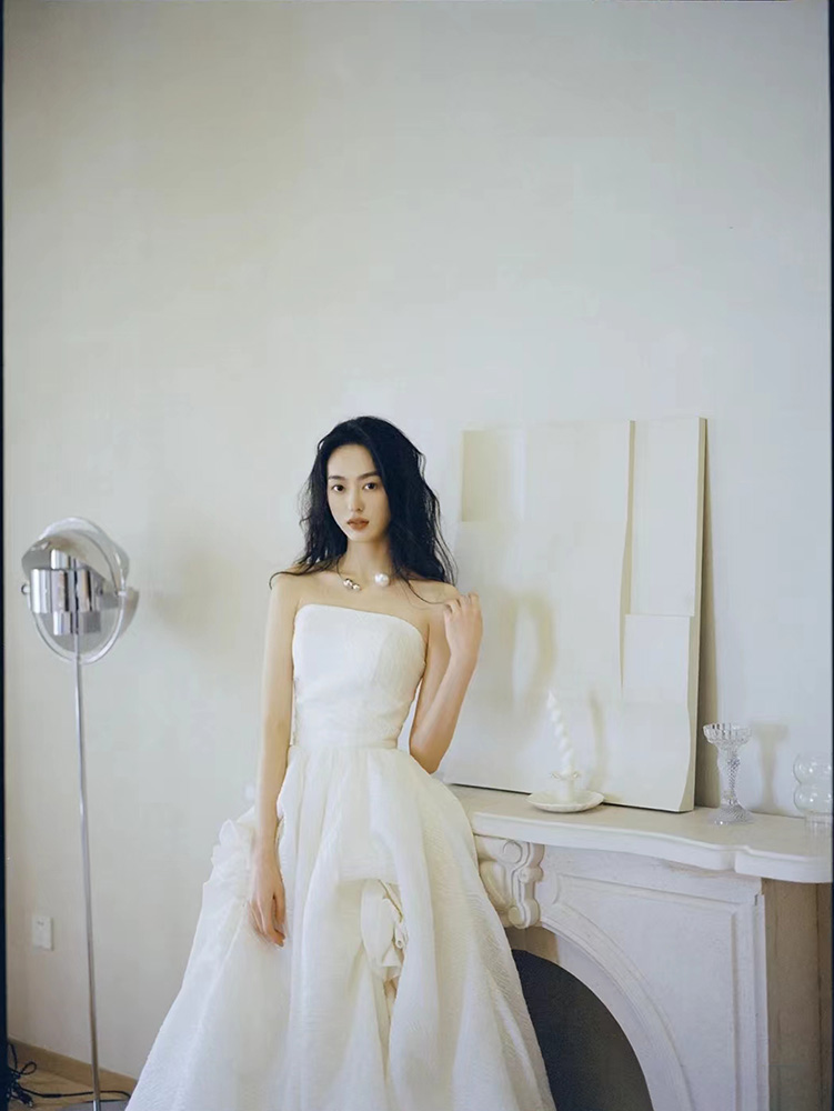 法式 新娘抹胸超仙森系白色礼服气质出门纱春秋 复古轻婚纱2024新款