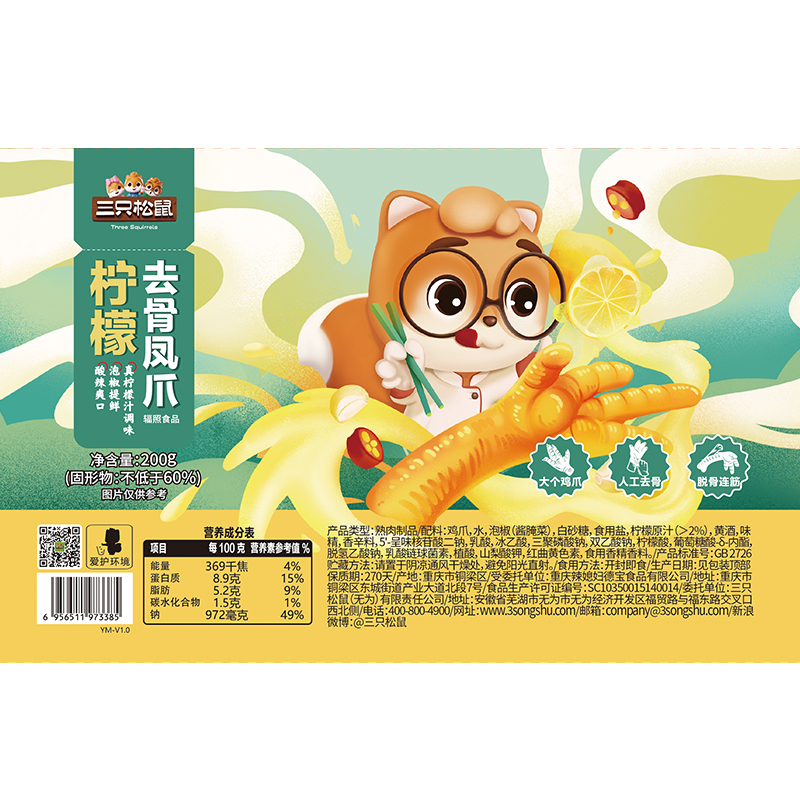 无骨鸡爪柠檬酸辣泡椒熟食零食小吃 三只松鼠_去骨凤爪200g