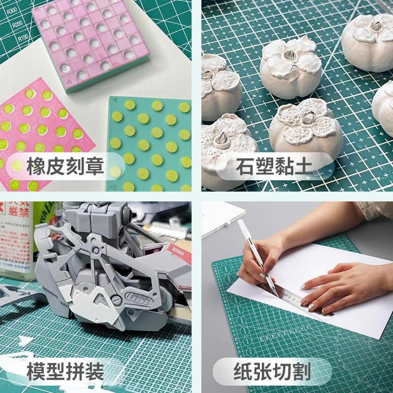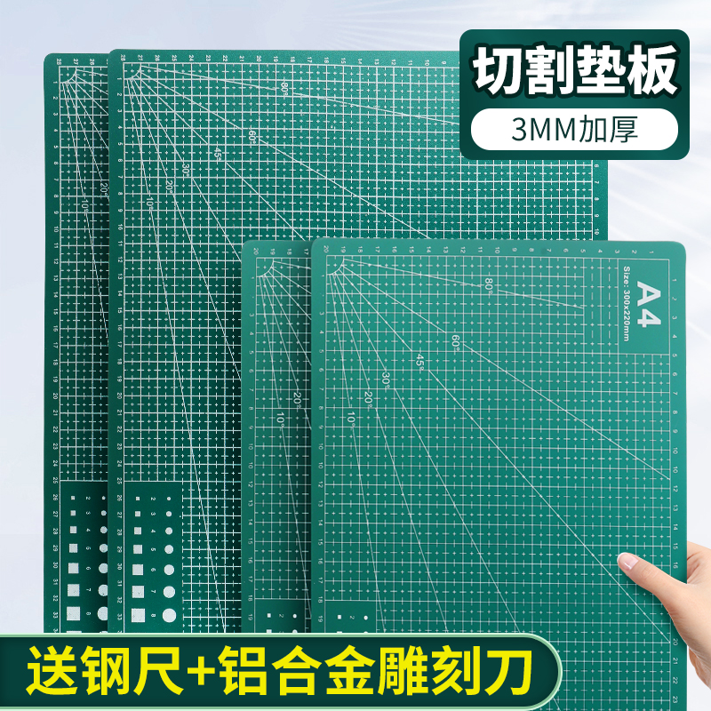 A4美工裁纸切割垫板a3大号手工DIY双面用套装 a2桌面刻板学生用画画工作pvc绿色软桌垫a4模型防割双面雕刻尺寸