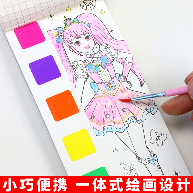 6岁女孩清水涂鸦图画本填充画 奇妙萌可儿童便携水彩涂色本23