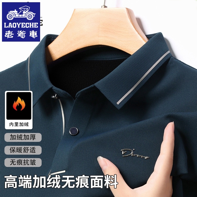 翻领中年高档无痕秋冬加绒T恤打底衫 老爷车春秋装 polo衫 长袖 男士