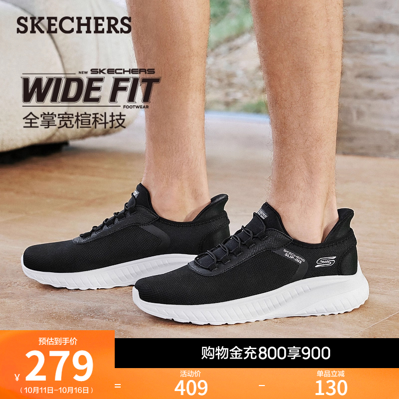 厚底休闲鞋 斯凯奇闪穿鞋 一脚蹬健步鞋 男脚宽脚胖缓震增高鞋 秋新款