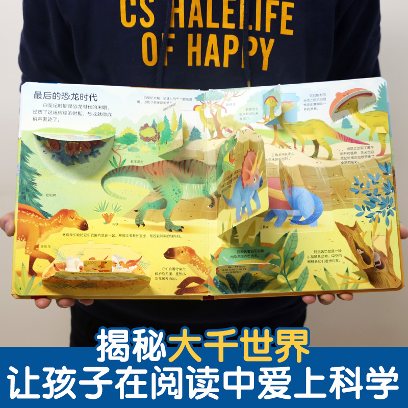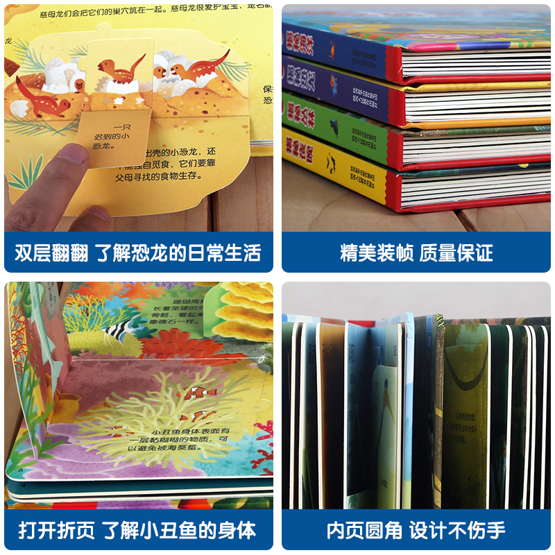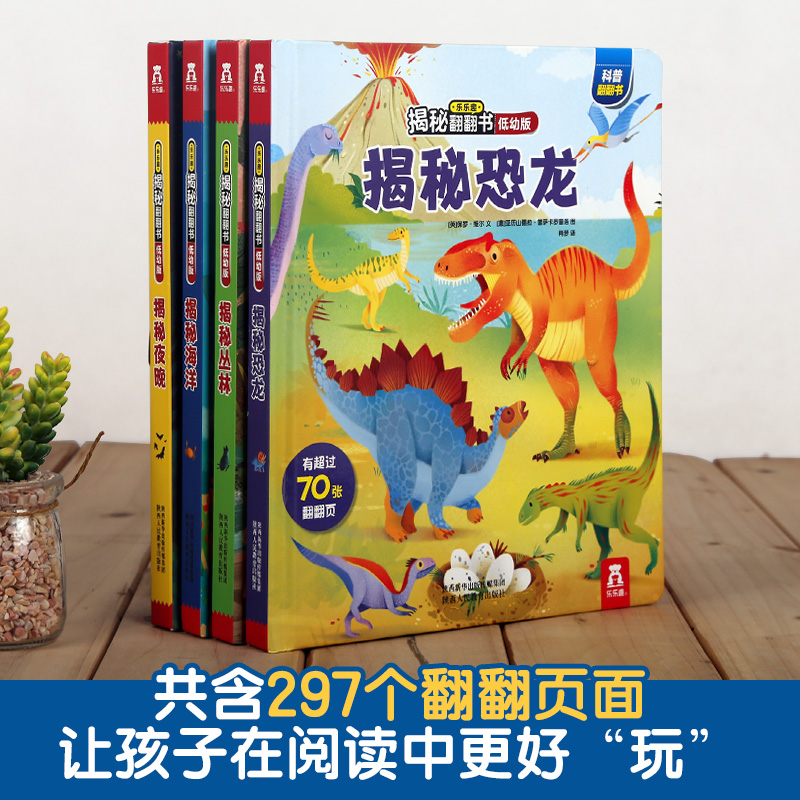 立体绘本幼儿园早教读物课外阅读 夜晚海洋丛林低幼儿童科普读物大小百科全书恐龙书3d版 乐乐趣揭秘翻翻书系列低幼版 第二辑4册