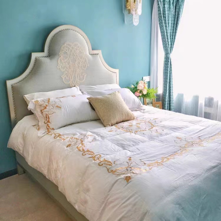 美式 家用刺绣大床复古轻奢婚床型新古典实木双人床主卧室床公主床