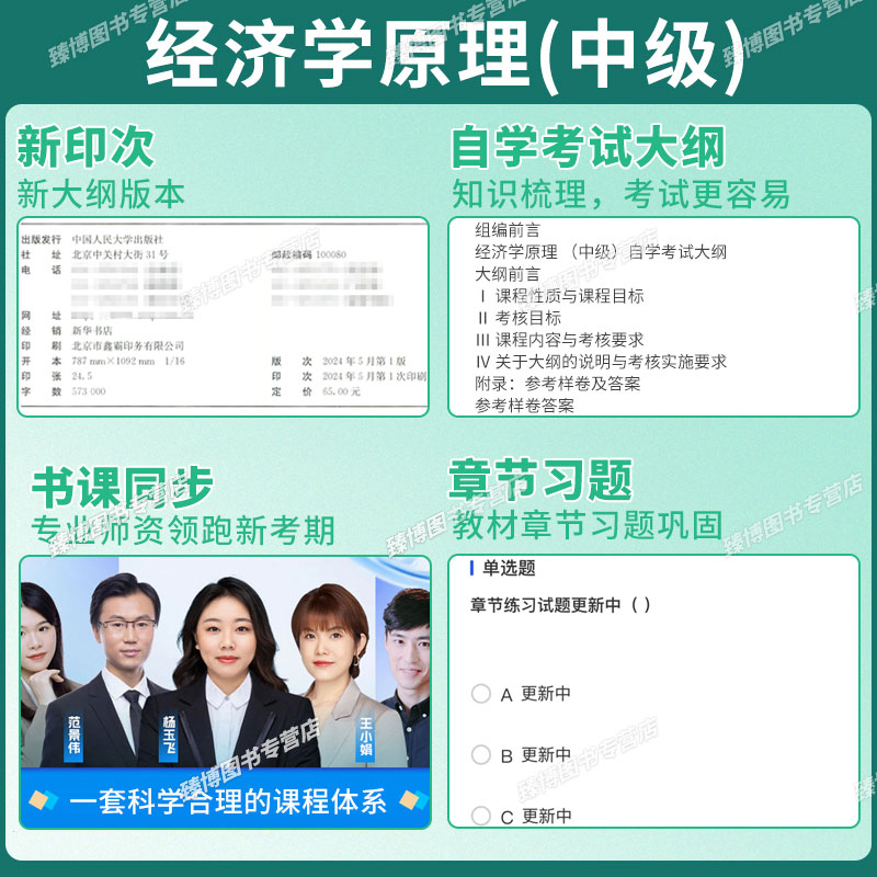 中国人民大学出版 自考教材配数字资源于春海2024版 社9787300328928自学试卷自考真题一考通2025 中级 成人自考13887经济学原理