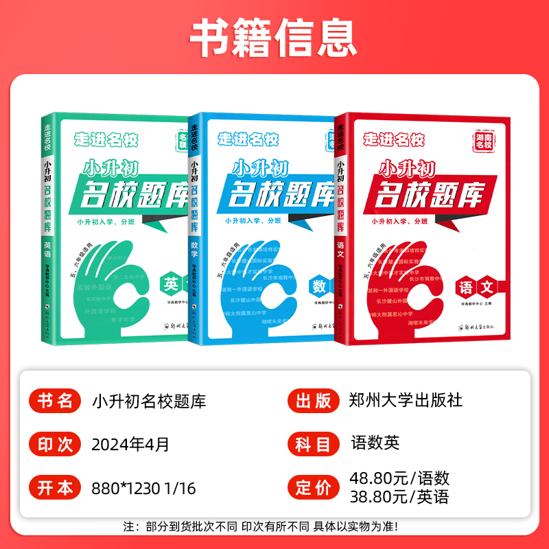 走进名校小升初名校题库语文数学英语湖南省长沙联盟小学升初中初一入学分班真题卷人教五六年级毕业升学总复习 2025版 湖南专版