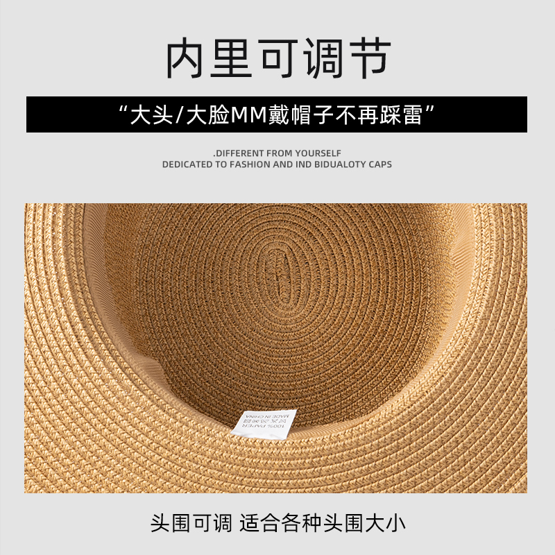 平顶礼帽女士夏季 2025太阳帽子海边沙滩遮阳草帽防晒帽男帽 法式