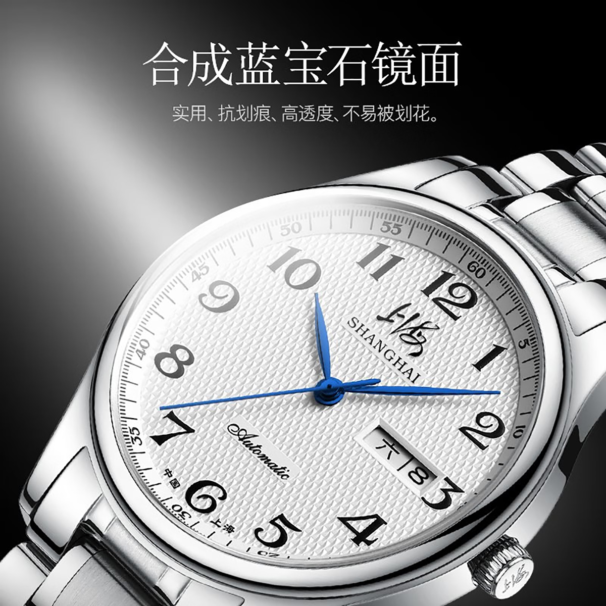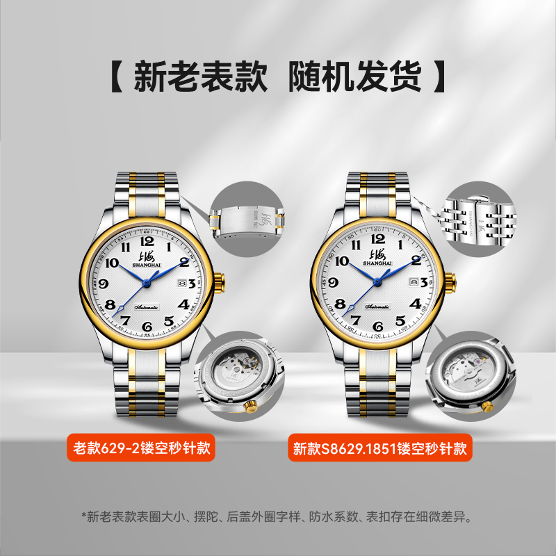 上海手表男自动机械表时尚 情侣日历夜光防水钢带国产腕表礼物629