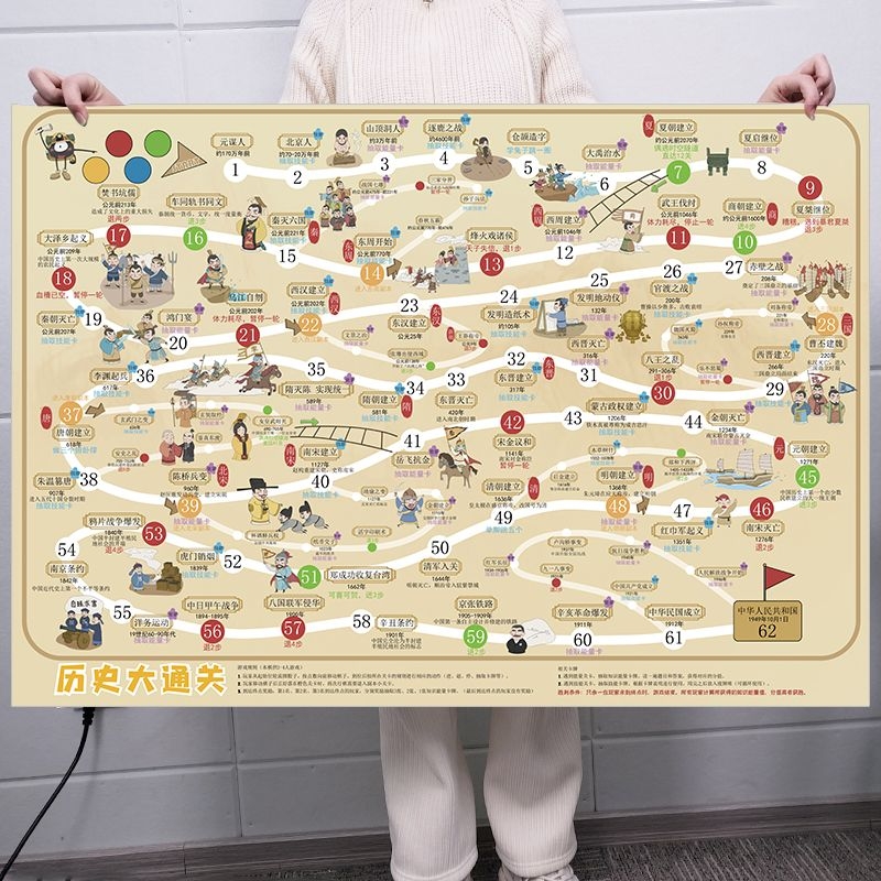15岁地理历史大通关飞行棋配知识能量卡亲子游戏益智多功能玩具中国历史知识游戏学历史幼儿园小学生带娃神器大富翁类型玩具