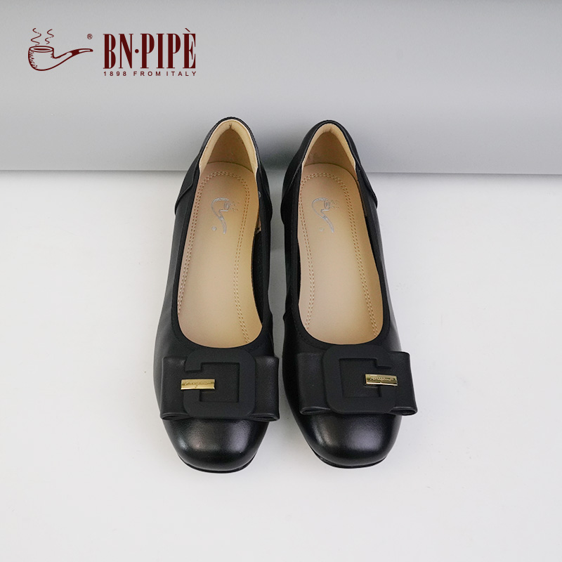 浅口小皮鞋 百年烟斗粗跟真皮女鞋 职场工作鞋 新款 不累脚 高跟夏季